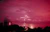 На вершине горы Китт Пик в штате Аризона (США) расположено очень большое собрание больших телескопов разного назначения. 2,1-метровый телескоп, который Вы видите - не исключение. Именно с помощью него были открыты первая гравитационная линза и первы й пульсирующий белый карлик. В грозу вид на такой высоте прямо захватывает. Недавно обсерватория Китт Пик отпраздновала свое сорокалетие.