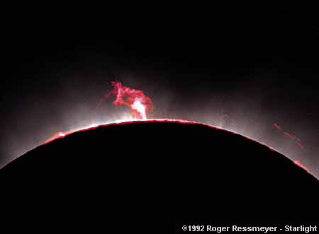 Солнце, как мы говорили, излучает во всех длинах волн. Ученые ведут за дневным светилом наблюдения во всем их диапазоне, так как солнечная активность сильно сказывается на погодных условиях на Земле, если погоду понимать в широком смысле. С Земли Солнце изучается также с помощью специальных солнечных телескопов. Особенность их заключается в том, что в такие системы входят два зеркала. Одно из них поворачивается за Солнцем, следуя за его движением по небу, и отражает свет в зеркало неподвижное. Для изучения Солнца существуют несколько, в том числе и международных, программ. Для простейших же любительских наблюдений достаточно небольшого телескопа. Существуют специальные космические исследовательские аппараты, предназначенные только для наблюдения за Солнцем. Смотреть на Солнце без сильно поглощающего свет фильтра нельзя. Вспомните, что с помощью трехсантиметровой лупы от солнечного света можно разжечь огонь, а телескоп собирает гораздо больше света. Надежнее и безопаснее всего наблюдения производить на белом экране, устанавливаемом за окуляром телескопа. |