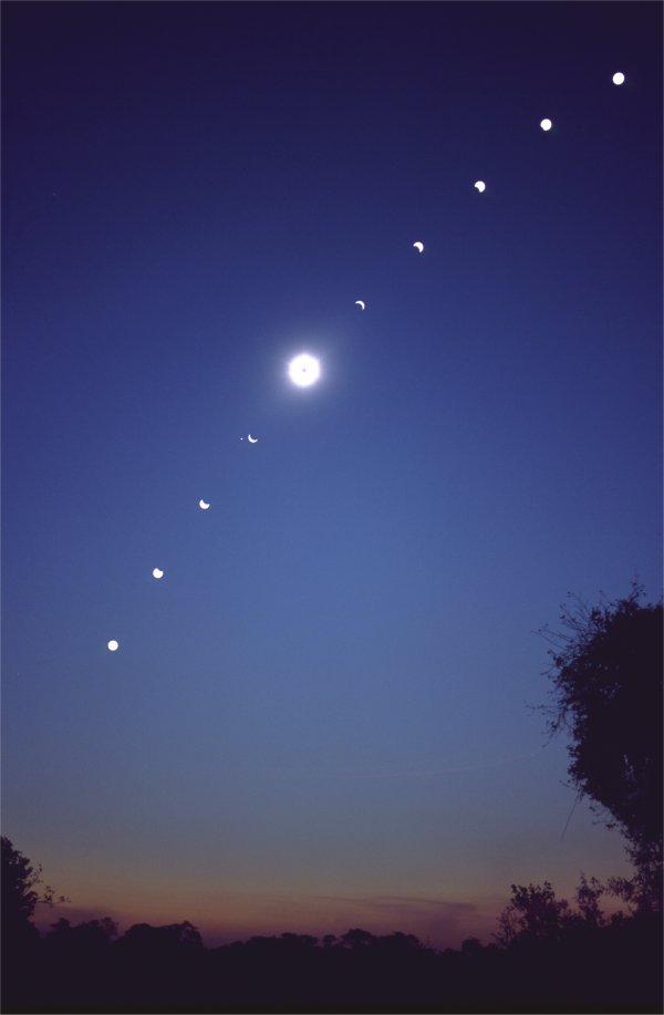 Москвы. По случайности, а не умышленно, эта астрономическая энциклопедия появилась на глазах у Интернет-публики как раз 11-го августа 1999-го года. По этому поводу можно испытывать лишь безусловную компенсаторную радость. На десерт, Вы получаете предоставленную NASA возможность посмотреть в убыстренном варианте последнее полное затмение второго тысячелетия (2 138к, mov ). В 2000-м году состоялись четыре солнечных затмения (5-го февраля, 1-го июля, 31-го июля и 25-го декабря). Но ни одно из них не было полным.